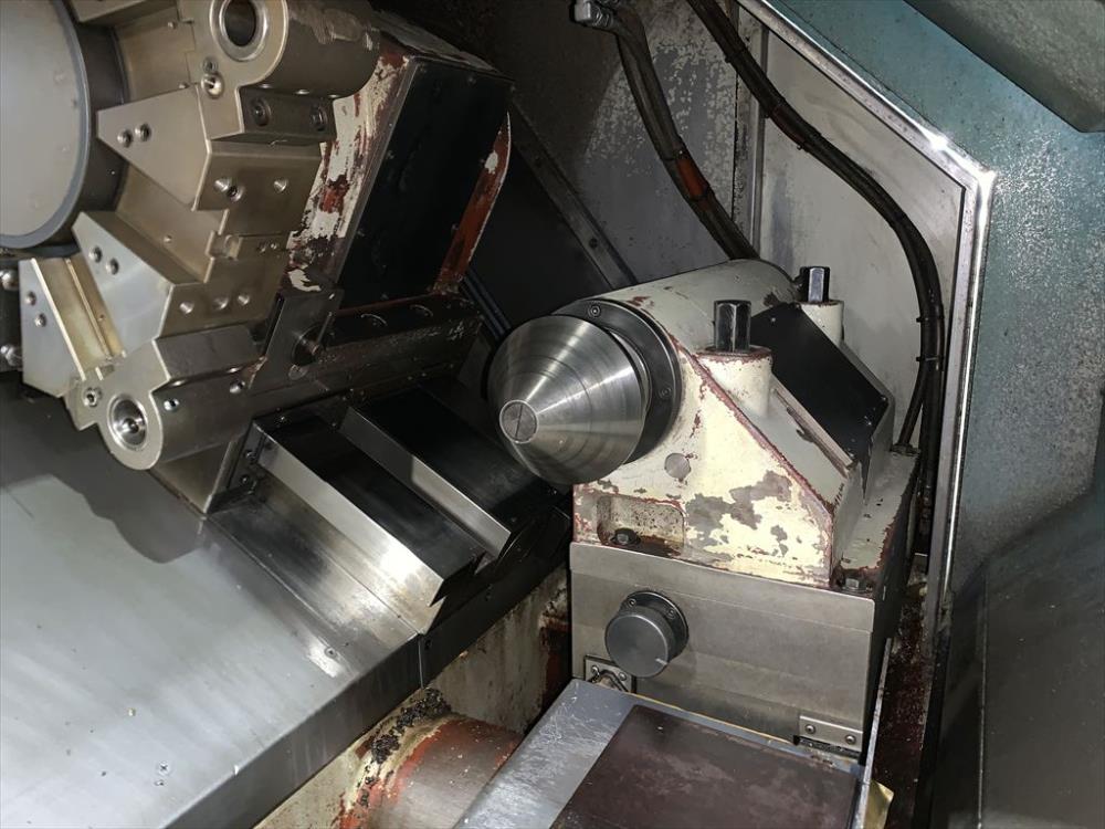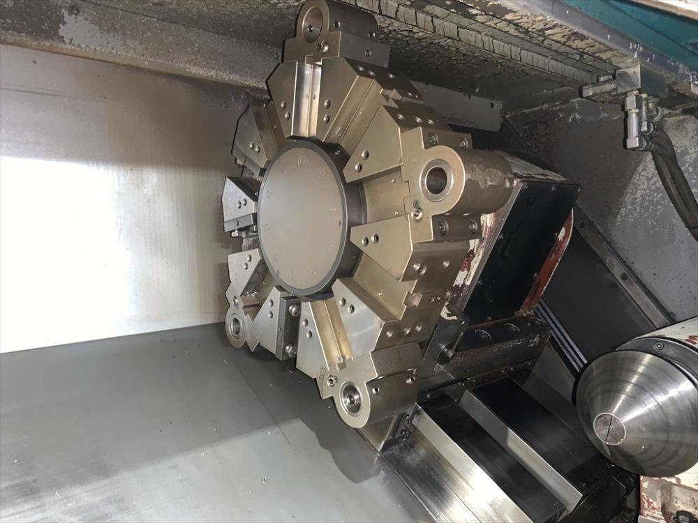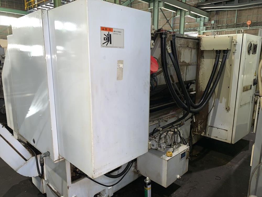 FANUC-18T 中実チャックφ450(北川N-18)X/Zストローク: 250/1100 ベッド上振りφ600 最大加工径φ450 最大加工長1020 主軸2500rpm 10角タレット 右出しチップコン