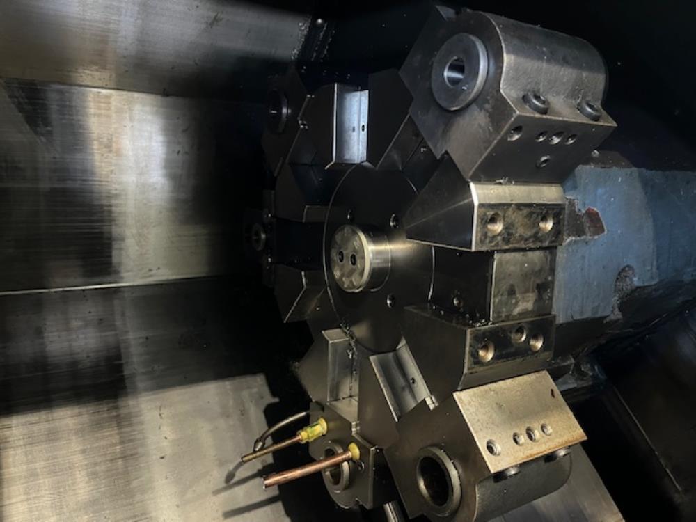 8角刃物台 芯押し無 後出しチップコンベア