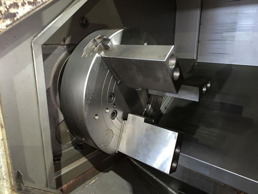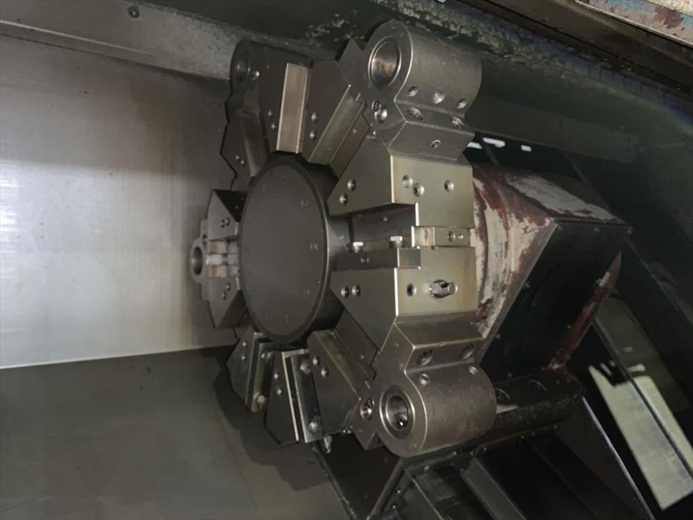 FANUC-18T 中実チャックφ450(北川N-18)X/Zストローク: 250/1100 ベッド上振りφ600 最大加工径φ450 最大加工長1020 主軸2500rpm 10角タレット 右出しチップコン