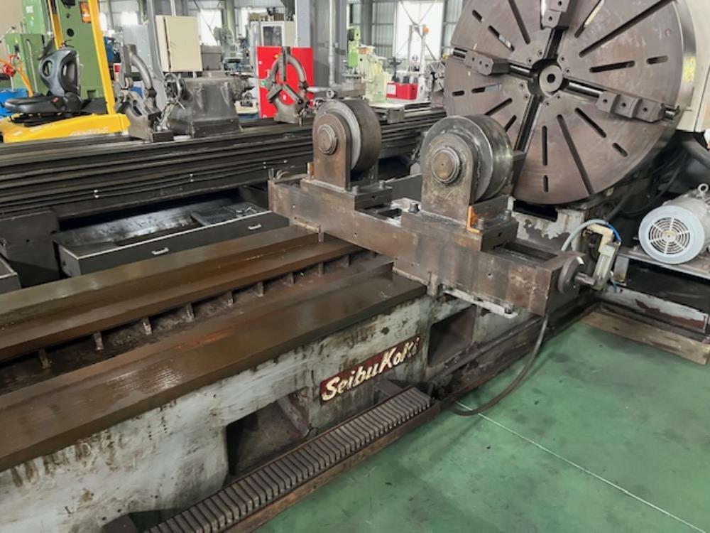 振り1270*芯間3000 切落し上の振りφ1800 サドル上の振りφ805 インデチャックφ1200 西部ハイテックにて更生修理(2014年10月)